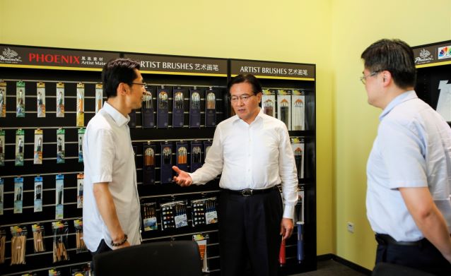 黄钦书记勉励凤凰画材积极发展文创产业,他说:无锡是历史文化名城、国家旅游休闲示范城市,凤凰画材等文化企业完全可以挖掘本土文化内涵,并与艺术相结合,开发打动人心的文创产品,向全世界讲述无锡故事。